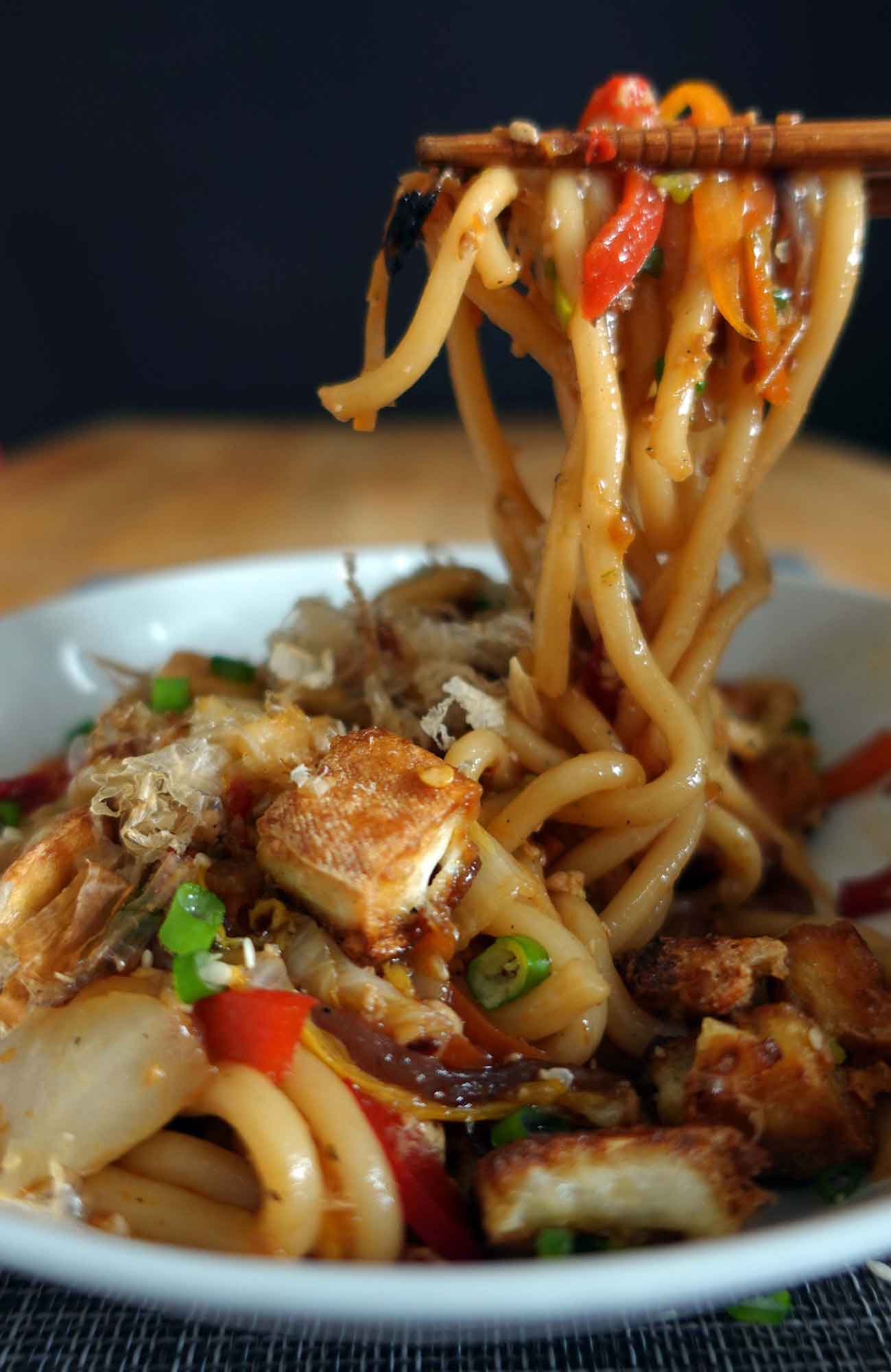 This is a recipe that I usually think of when I have a lot of leftover cooked vegetables and want to treat myself to some savory noodles. But let's be real. This is not a quick recipe unless you chop all these vegetables beforehand and freeze them or readily cooked veggies for whenever you want to stir fry something.